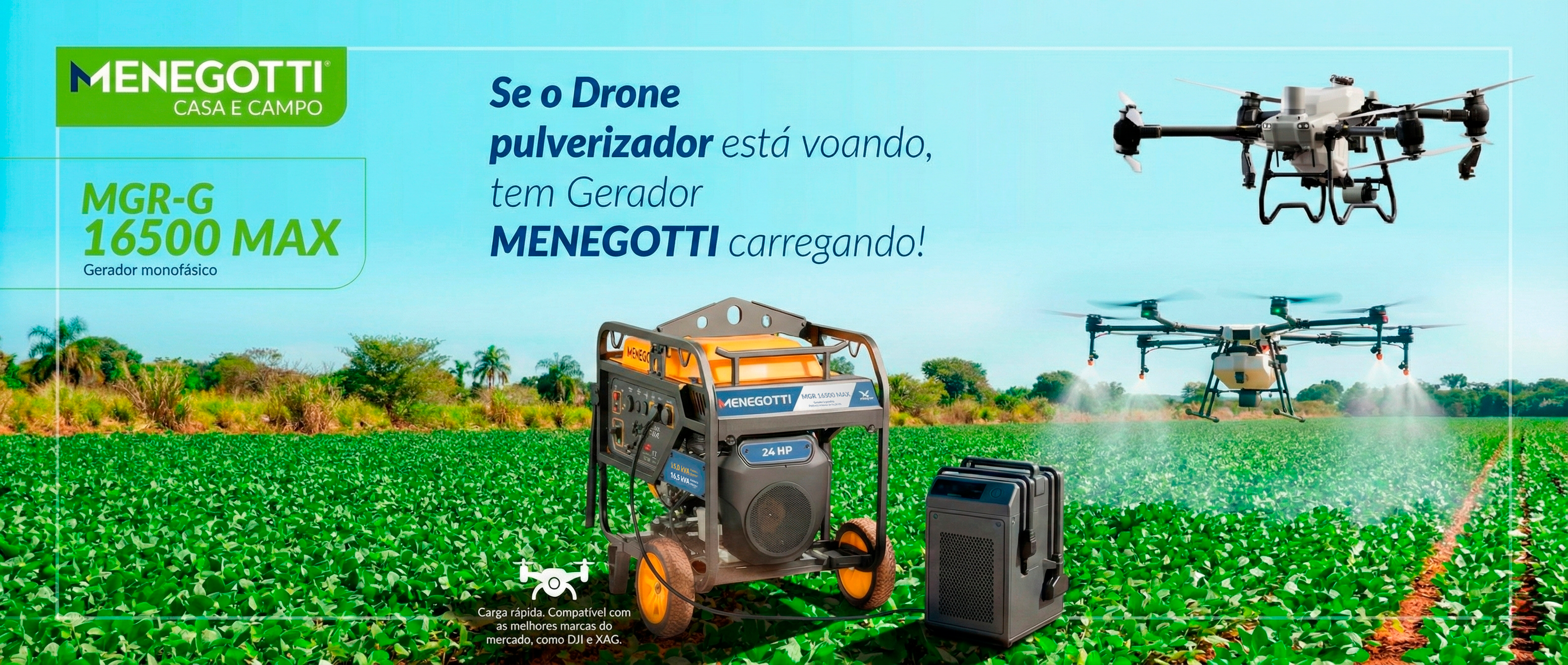 Com 15 kVA de potência de operação, motor 4 tempos de 24 HP, sistema monofásico 110/220 V e regulagem automática de tensão (AVR), o equipamento entrega energia estável para aplicações sensíveis, como carregadores de baterias de drones agrícolas, evitando quedas de voo e interrupções na pulverização.